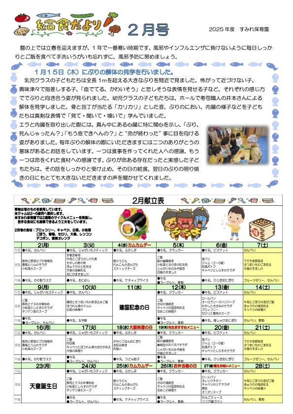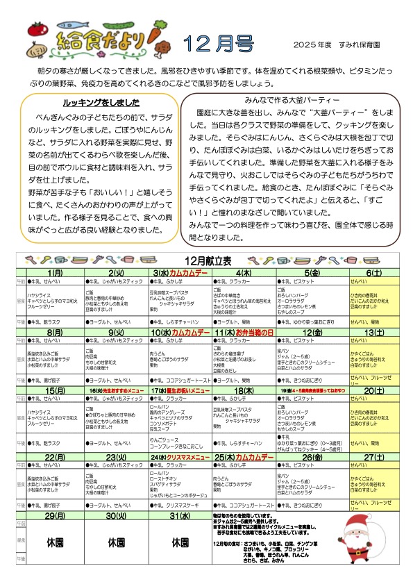伝統食・行事食を取り入れ、食文化の伝承に努めます。 |