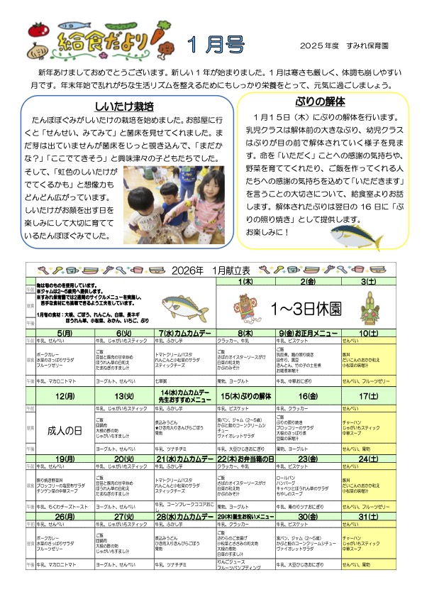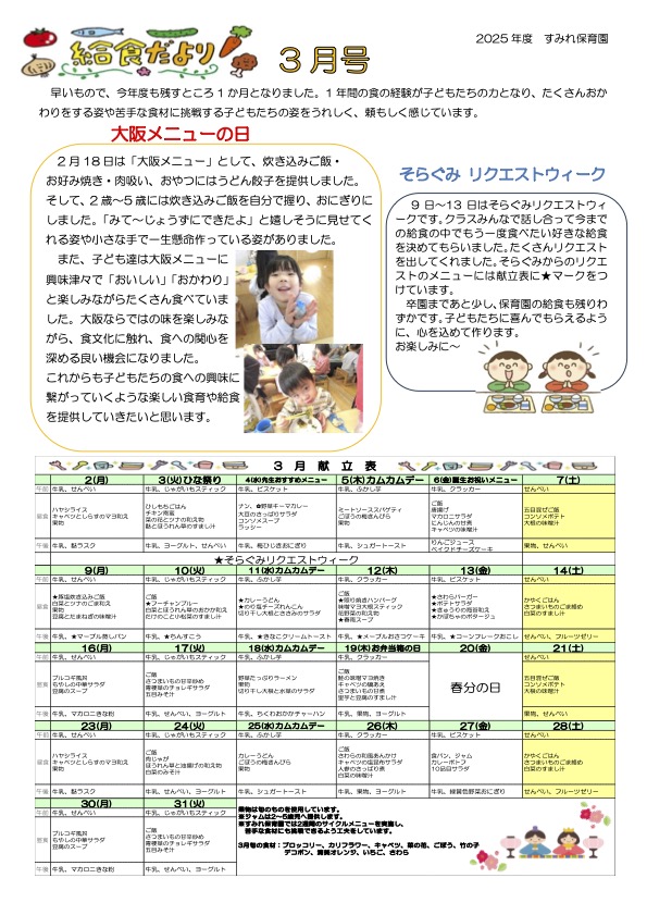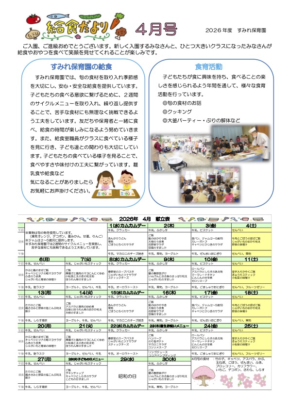 伝統食・行事食を取り入れ、食文化の伝承に努めます。 |